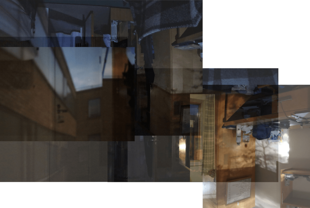 These are collages of my room with the Camera Obscura effect. The photos are arranged to flatten my room, and the Black and White Versions were created to turn the collage into its own image.